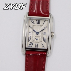 New Popular Rectangle Sport Roman Letters Personality Dial Crystal Mechanical Leather Strap Unisex Watches with Pointer